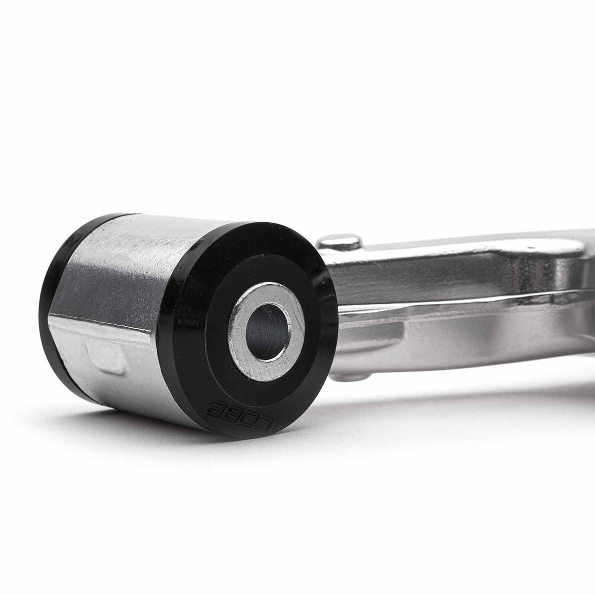 The COBB Subaru Alloy Front Lower Control Arm, STD Alignment (or Offset Caster) will increase the handling of your WRX to better than that of the STI. This is accomplished with by using light-weight alloy construction which yields less unsprung weight. Stiffer bushings also provide better tire contact patch control with minimal NVH and maximum service life. The difference between this unit and the offset caster LCA is the offset provided by the rear bushing assemblies. On the offset caster unit, the center of the bushing assembly is moved inboard (effective to 3 o’clock on the driver’s side and 9 o’clock on the passenger’s side when viewed from above). Doing this moves the rearward mounting position of the arm outboard, in turn sweeping the arm forward slightly which relocates the knuckle and base of the front strut forward introducing additional positive caster (~0.5° per side).