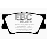 There are TWO reasons our customers love Redstuff, First because they are the lowest dust pad we have encountered by reducing dust by 60-90-percent. Plus the minimal dust you see is very easily removed with a simple sponge wash as it contains no steel fibre particles as in ALL OTHER pads. Second they brake like an alligator right from cold (as good as Original pads or better) and just get better as they heat up.This material is a Synthetic Fiber based brake compound enhanced with ceramic particles. If you have previously tried EBC redstuff (pre-ceramic compound) this material is light years ahead. It lasts longer; it brakes better and is quieter. Being a hard wearing pad, bed-in times can be as long as 1000 miles and drivers must be patient until the pad takes up the shape of their disc (brake rotor). This is a truly impressive fast road pad for repeated heavy braking.It emits far less dust than semi-metallic pads and has been proven to stop a passenger car/sedan/sport compact/hot hatch 13 metres quicker than OEM pads from 100mph/160kph. Features EBC Brake-In surface coating which conditions rotor surface and accelerates pad bed-in. Nominal friction coefficient 0.5 with approx. 50-percent dust reduction.Most EBC Red Ceramic pads are approved to ECE R90 brake safety regulation.