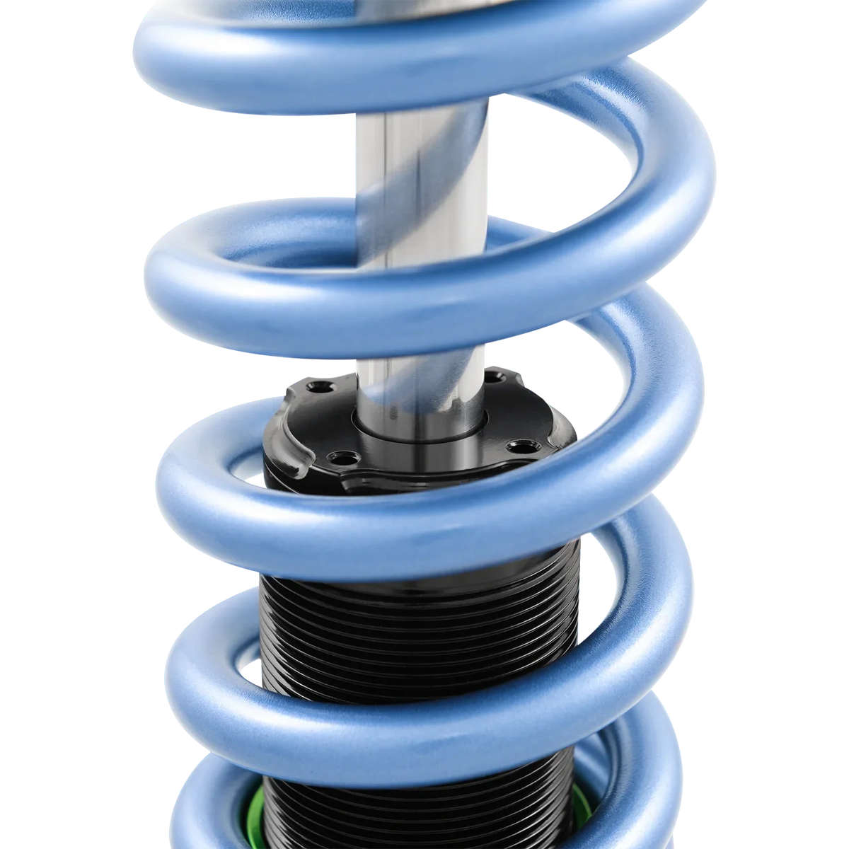 Digressive piston technology allows for stiff low-speed compression/rebound force. This gives more control of driver inputs such as roll, dive, and squat. However, at fast stroke speeds (i.e. high speed bumps) the suspension becomes supple in response to bumps and irregularities in the road for maximum control.