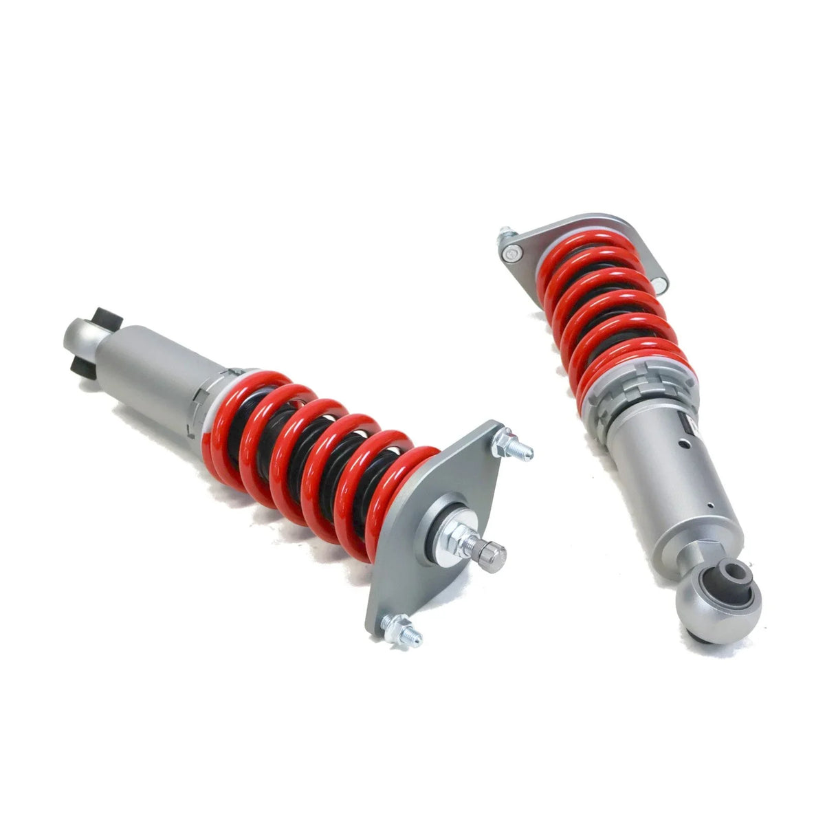 Ride‐height and spring preload are independently adjustable via full‐length collars, so you can lower your stance without compromising spring dynamics. Many applications include pillow‑ball camber plates with Koyo 6204Z bearings, providing precise steering feedback and alignment stability under cornering strain.