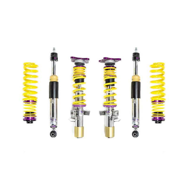 Designed to maximize the performance on vehicles with DOT-R and other ultra high-performance tire setups. KW V3 Clubsport coilovers are the ideal choice for double-duty street cars, use at HPDE's(high performance drivers education), time attack or time trials, and club level racing. The Clubsport setup was specially designed on the Nordschleife and the continuous adjustable ride height allows for fine corner weight or making setup changes. The TVR-A and TVC-A valve technology -provide an unmatched level of separately adjustable damping for the rebound and compression enabling a customized set up appropriate for the vehicle's modifications such as weight, tire characteristics, and other various conditions. The KW V3 Clubsport INOX-LINE coilover kit is the ideal tool for performance-oriented drivers and experienced tuning enthusiasts who place a strong emphasis on the overall performance of their suspension. The KW V3 Clubsport features patented TVR-A and TVC-A technology -hat provides separately adjustable rebound and compression damping. The extensive Adjustment -angle of the independently configurable rebound and compression make it easy to directly influence the steering behavior, directional stability, grip and handling characteristics for confident and repeatable results at the limit of driving dynamics.