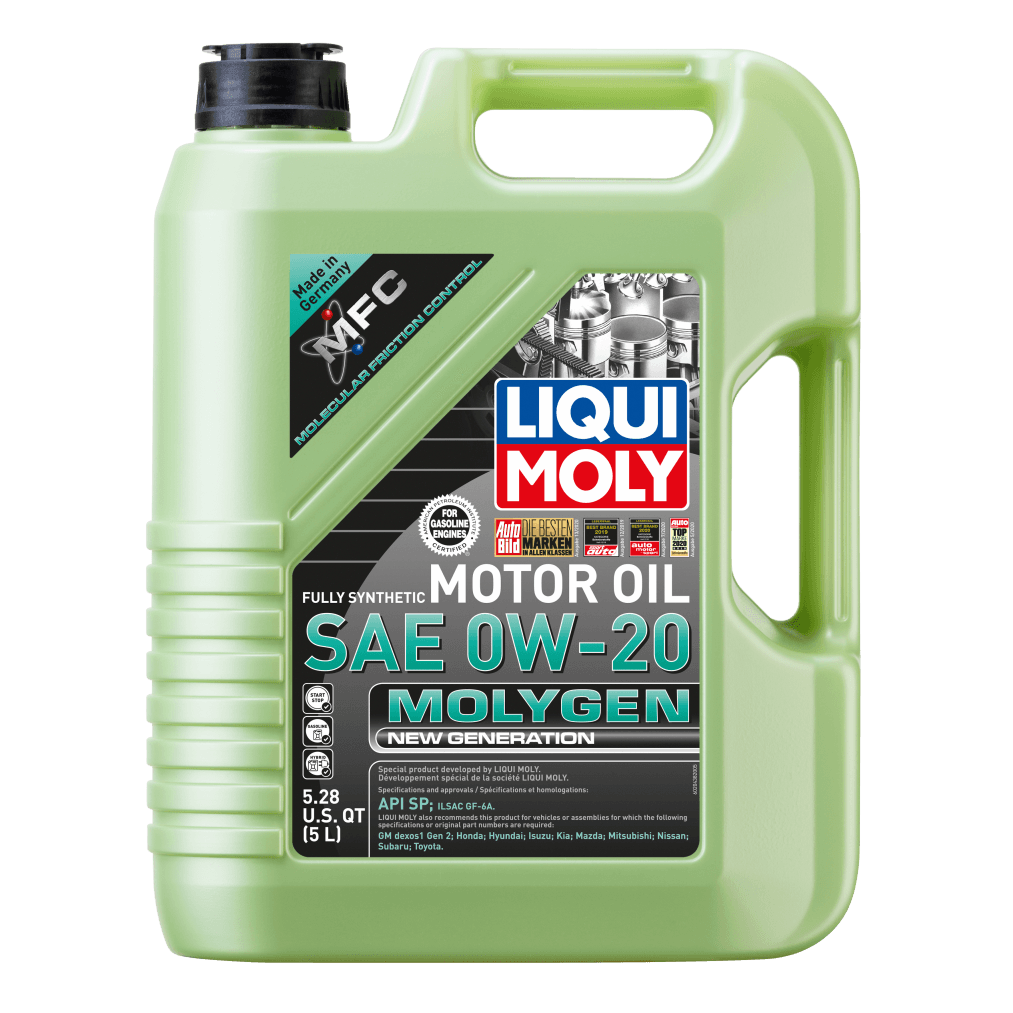 Fully synthetic LIQUI MOLY specialty with a unique additive technology. The powerful MFC (Molecular Friction Control) technology prevents formation of deposits while simultaneously reducing frictional losses. The synergetic effect provides optimum wear protection even under tough operating conditions. Improved fuel consumption and increased engine life are some of the end results. The oils fluorescent green color is typical for the MFC formulation.