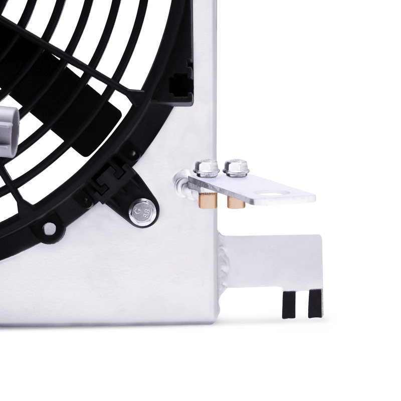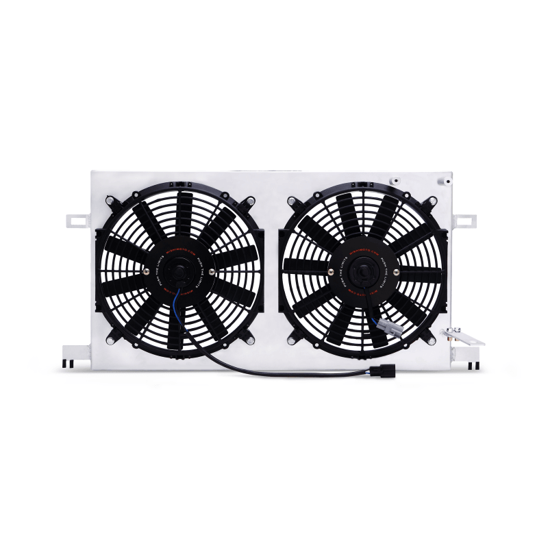 Free up some space in your BRZ / FR-S / or GT86's small engine bay with the Mishimoto Plug-N-Play Aluminum Fan Shroud Kit! This kit bolts directly to your stock or Mishimoto Subaru BRZ /Scion FR-S Performance Aluminum Radiator and works perfectly with the stock coolant overflow tank. The brushed aluminum fan shroud is preassembled in the correct location with two 12in high-flow fans, and prewired with stock-style connectors. This plug-n-play kit requires zero splicing, soldering, or crimping and bolts into place just like the stock fan shroud setup. Each fan provides over 1150 CFM of airflow, which effectively keeps hot engine temperatures at bay. Thanks to a slim profile, this fan shroud has a maximum depth of just 3.5in that saves significantly more engine bay space for a larger header, turbo kit, or supercharger. This kit includes all hardware for installation and the Mishimoto Lifetime Warranty.