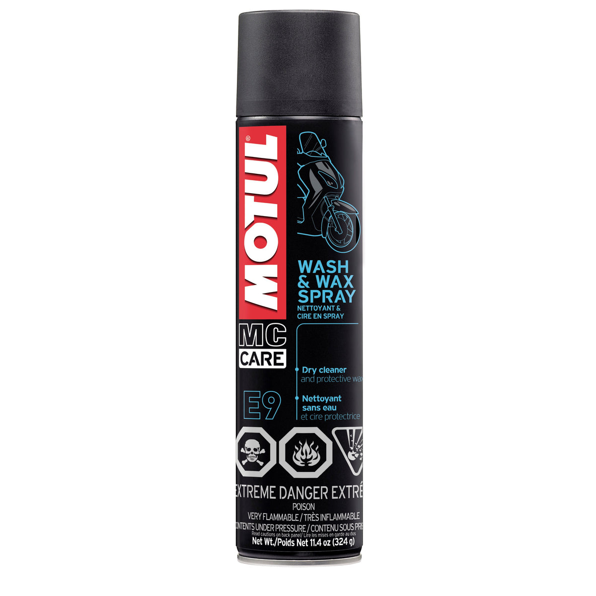 TYPE OF USE: Wash & Wax is the dry cleaner for your MOTORCYCLE. Thanks to its exclusive formula, it cleans and protects motorcycle bodies without water: fairings, rims, frames, swingarms. ; 1/ Easy to use, Wash & Wax wipes clean all surfaces in depth without using water or rags: removes mud, dirt and others stains.; 2/ Deposits a protective wax film for extended effectiveness. Enhances body shine.; PERFORMANCE:; Wash & Wax cleans and shines up all surfaces in depth without using any water.; Removes mud, dirt and others stains.; Easy to use. ; Leaves a protective wax film for extended effectiveness. ; RECOMMENDATIONS:; Spray Wash & Wax directly on the surface to clean. ; Scrub with a soft rag clean and dry.; SECURITY: Refer to the MSDS sheet and the information mentioned on the spray.