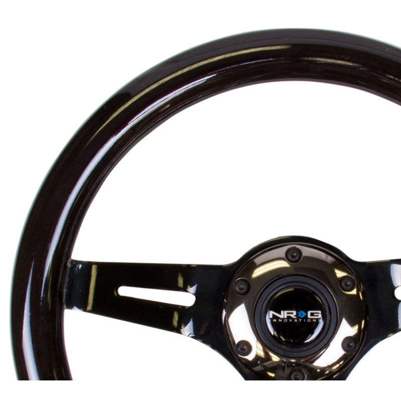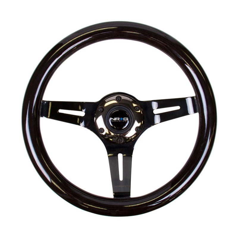 NRG Classic Wood Grain Steering Wheel (310mm) Black w/Black Chrome 3-Spoke Center