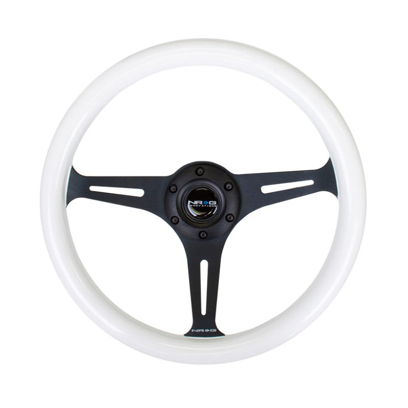 NRG Classic Wood Grain Steering Wheel (350mm) Glow-N-The-Dark Green Grip w/Black 3-Spoke Center