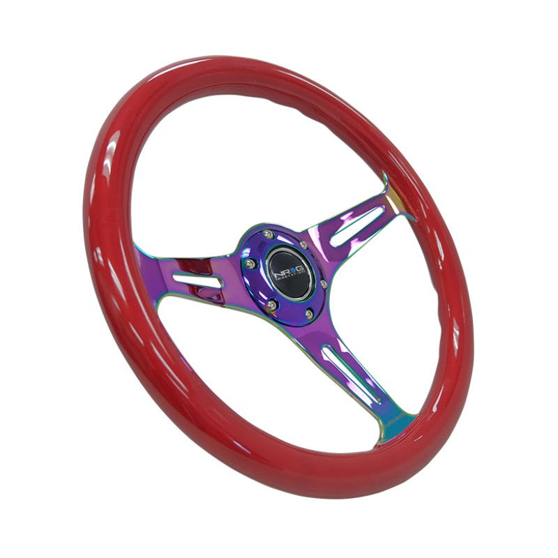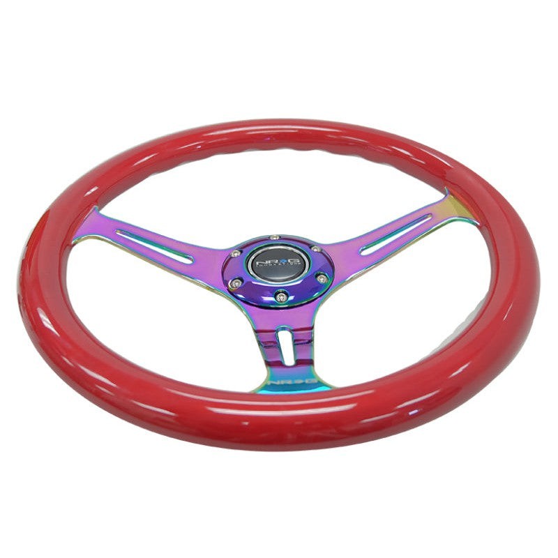 NRG Classic Wood Grain Steering Wheel (350mm) Red Grip w/Neochrome 3-Spoke Center