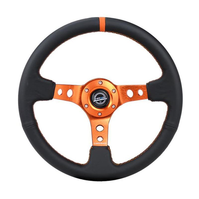 NRG Reinforce Steering Wheel (350mm / 3in. Deep) Blk Leather, Orange Center Mark w/ Orange Stitching