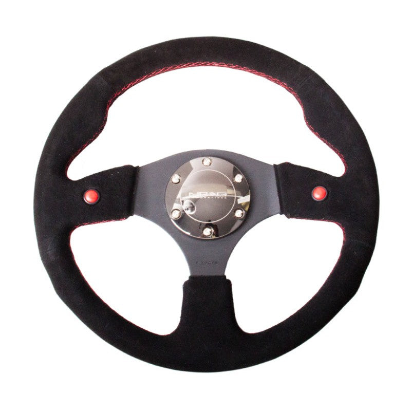 NRG Reinforced Steering Wheel (320mm) Blk Suede w/Dual Buttons