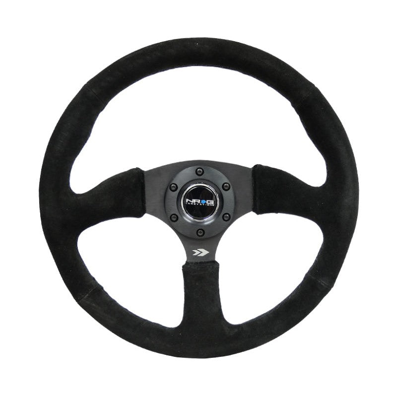 NRG Reinforced Steering Wheel (350mm / 2.5in. Deep) Blk Suede Comfort Grip w/5mm Matte Blk Spokes