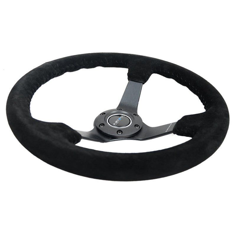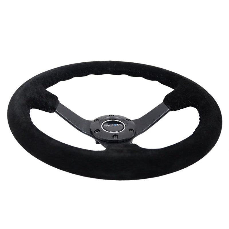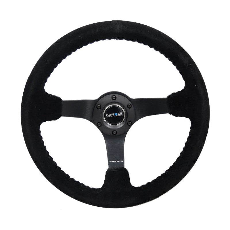 NRG Reinforced Steering Wheel (350mm / 3in. Deep) Blk Suede/Blk Bball Stitch w/5mm Matte Black Spoke
