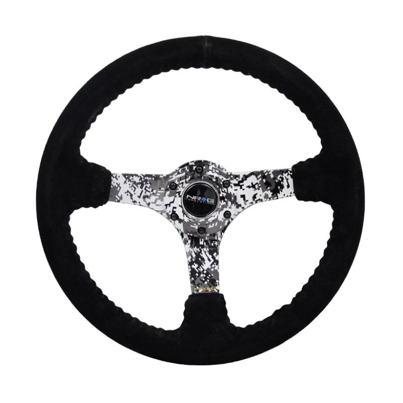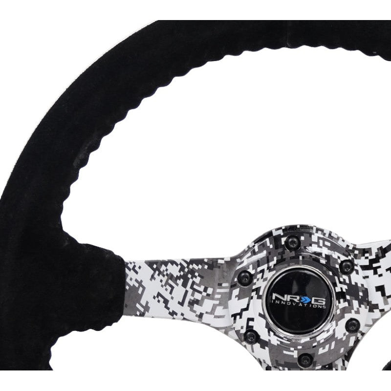 NRG Reinforced Steering Wheel (350mm / 3in. Deep) Blk Suede w/Hydrodipped Digi-Camo Spokes