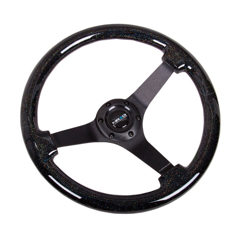 NRG Reinforced Steering Wheel (350mm / 3in Deep) Classic Blk Sparkle Wood Grain w/Blk 3-Spoke Center