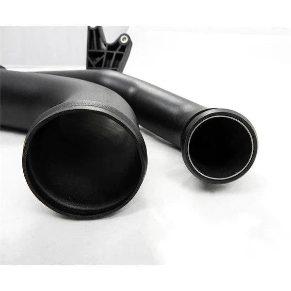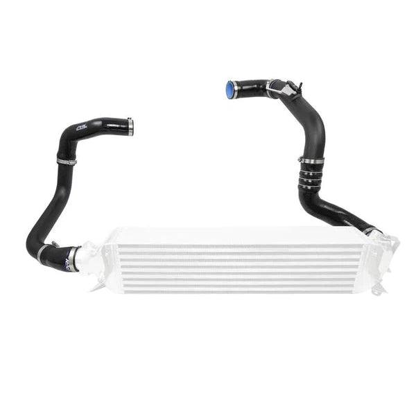 Our upgraded charge pipe kit utilizes smooth flowing, larger inner diameter hot (1.50" factory compared to 2.00") and cold-side (1.5" factory compared to 2.5") for increased airflow and factory diameter hot-side outlet to aid in turbocharger spool. 4-ply silicone couplers are used throughout our design for a couple of reasons:
