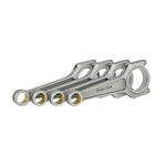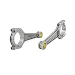 Skunk2 Racing Ultra rods are manufactured from forged 4340 Chromoly steel then heat treated for ultimate strength. Skunk2 Racing Ultra rods are an x-beam style which greatly reduces weight while maintaining strength by removing material and strategically shaping the beam. This results in a very high strength to weight ratio and is great for circuit and drag racing. The ribs / straps on the pin end increase strength and stiffness under high loads and engine speeds. The step on the big end (crank journal side) is for strength and rigidity to maintain roundness.