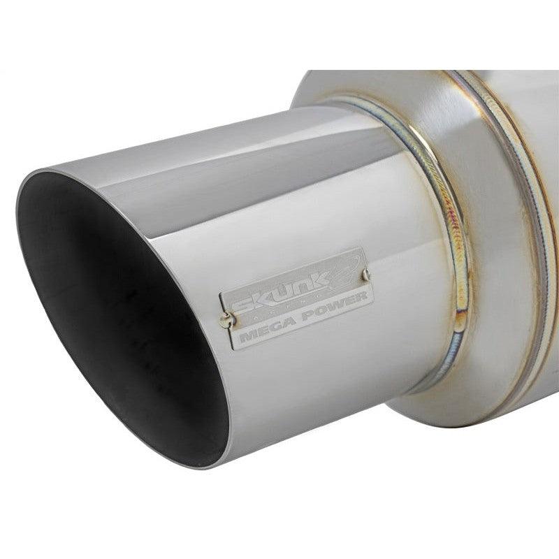 A properly designed exhaust system is critical to engine performance. Skunk2's 76mm MegaPower RR Exhaust system for the 07-11 Civic Si sedan was developed with this in mind and is based off of more than 15 years' worth of racing experience. Dyno-proven for maximum horsepower, MegaPower RR systems are constructed of T-304 stainless steel, are robotically TIG welded, and feature CNC mandrel bends for a precise fit. Designed for heavily modified naturally aspirated engines as well as for turbocharged applications that require more exhaust flow than Skunk2's 70mm MegaPower R Exhausts provide, MegaPower RR Exhausts allow engines to breathe more efficiently and produce more power thanks to larger diameter piping. MegaPower RR Exhaust systems were designed for maximum flow and power, featuring oversized tubing and mufflers, which result in a significantly louder tone when compared to other MegaPower systems. Featuring Japanese-spec, Super N1 styling, MegaPower RR Exhaust systems generate more horsepower by optimizing engine airflow and volume through carefully selected, application-specific tubing lengths and diameters and increased wave scavenging effects for more horsepower. CNC mandrel bending allows for a constant tubing diameter throughout the bend, which results in precise fitment as well as improved exhaust gas flow. Each system is fitted with a resonator, includes stainless steel flanges, and is finished off with a straight-through, low-restriction racing muffler for uninterrupted flow. Each fully polished muffler is mated to a 110mm polished tip with its own acid-etched MegaPower badge and serialized nameplate. A Skunk2 removable silencer and all necessary hardware are also included. Skunk2's MegaPower Exhaust systems are based off of the same systems we custom build for our road racing and time attack vehicles. MegaPower Exhaust systems offer more performance, better build-quality, and the ultimate sound when compared to comparably priced systems.