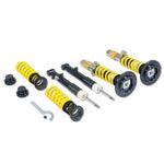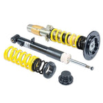Looking for maximum performance for your car? Our adjustable ST XTA Coilover kits are the upgrade you need. All ST XTA systems are delivered with a linear race springs system, adjustable dampers, and aluminum unibal camber adjustable top mounts. ST XTA Coilover kits deliver precise adjustment to your ride height so you control the look of your car. We manufacture the adjustable spring perch made of durable and friction-optimized polyamide composite material with a stainless steel insert. Thanks to the composite material corrosion is prevented between the strut and perch ensuring long lasting height adjustability while the stainless steel insert provides strength and confidence! ST XTA Coilovers come preset to our factory recommended damper settings, the same configuration we test them at on our KW shock dynos before they go into your box. The 16 distinct clicks of adjustable rebound damping allow you to refine the driving dynamics with a simple turn of the adjustment knob. Each kit includes a detailed damper setup manual making it easy to reset to our recommended setting at any time. Whether your preference is comfort, performance, or something in between; ST XTA puts the finer details of the driving dynamics in your hands. The top mounts included with our ST XTA Coilover kits allow you to adjust the camber at the front axle to dial in aggressive wheel and tire fitment. They also allow you to maximize the tire's contact patch for driving in fast corners and any other driving scenario that demands maximum grip. Galvanized zinc coated steel struts optimize corrosion protection for long lasting use. We add a dust protection system to prevent unwanted dirt and particulate from coming in contact with the hardened chrome piston rod or getting into the valve packs. We reinforce the system with a multi-layered pressure resistant sealing package, mono block guide system and a low friction piston band which works inside the pressure resistant internal damper housing.