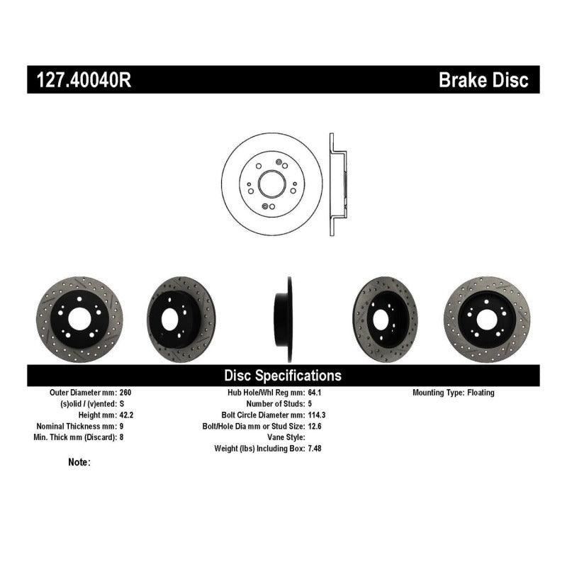 StopTech 06-09 Honda Civic Ex/Si Slotted & Drilled Right Rear Rotor