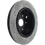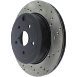 StopTech Drilled Sport Rotors are 1-piece direct replacement brake discs for factory brake systems and stock calipers that look great behind your wheels – and offer significantly improved braking performance. The unique cross-drilling aids with heat and brake dust dispersal; prevents glazing of the pads; adds bite and improves wet and dry braking performance. Built to last; the black e-coating provides protection from corrosion and the high carbon metallurgy (in most applications) offers quieter operation; better crack resistance and increased performance.