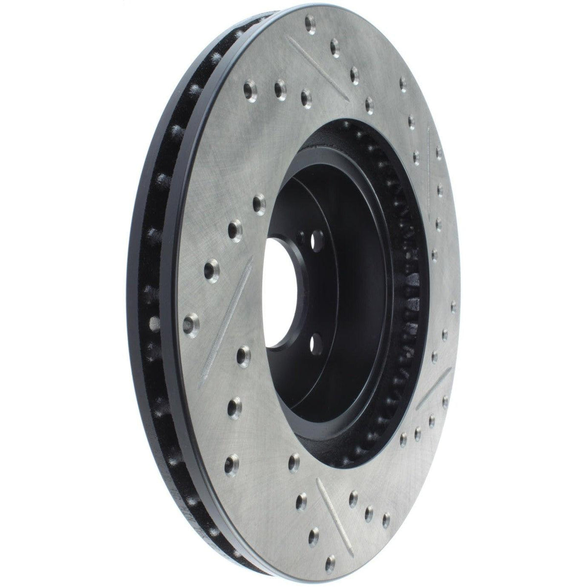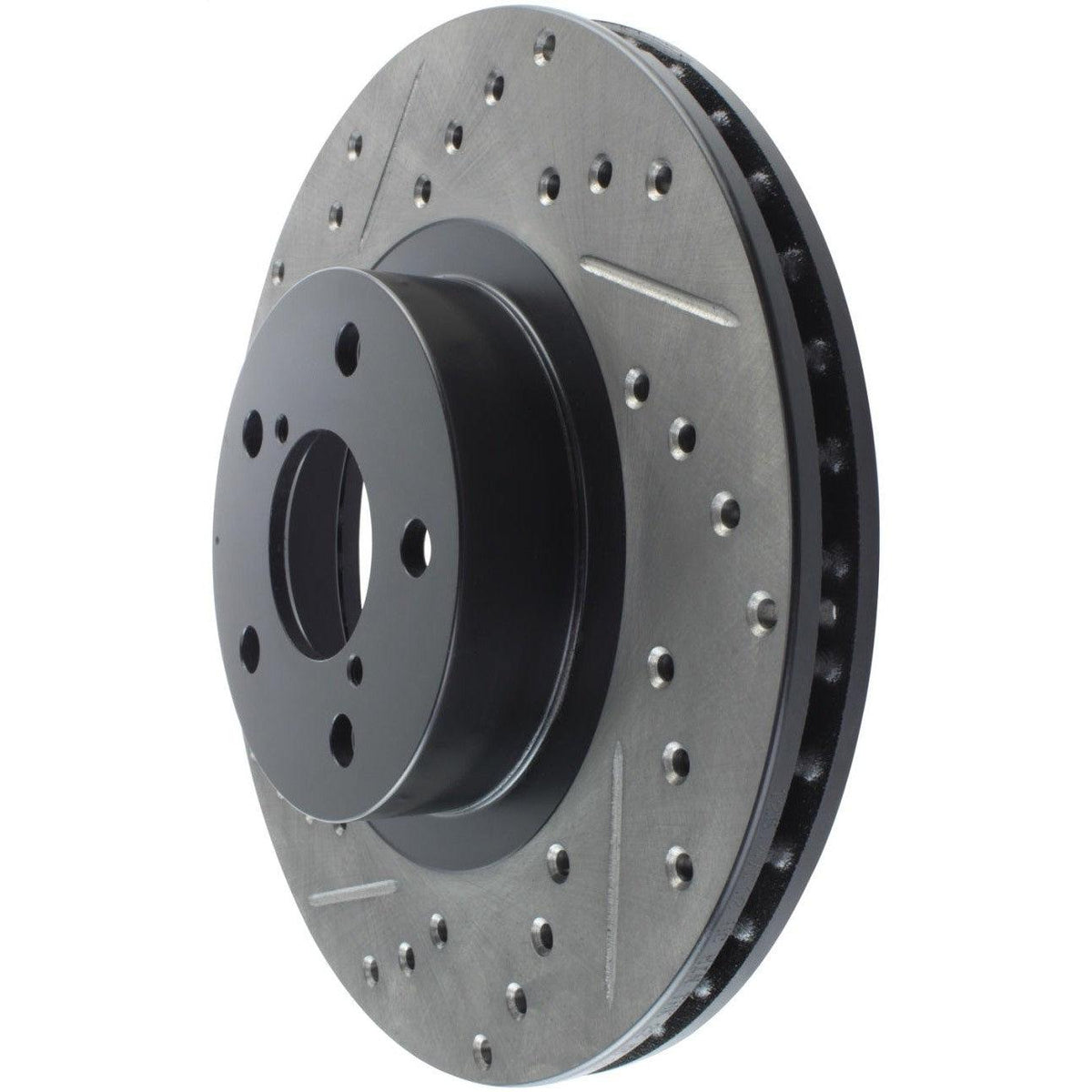 StopTech Drilled and Slotted Sport Rotors are 1-piece direct replacement brake discs for factory brake systems and stock calipers that look great behind your wheels – and offer significantly improved braking performance. The unique cross-drilling and slotting aids with heat and brake dust dispersal; prevents glazing of the pads; adds bite and improves wet and dry braking performance. Built to last; the black e-coating provides protection from corrosion and the high carbon metallurgy (in most applications) offers quieter operation; better crack resistance and increased performance.