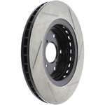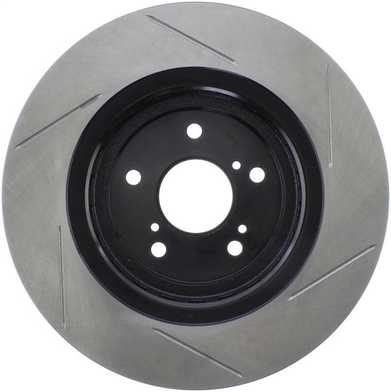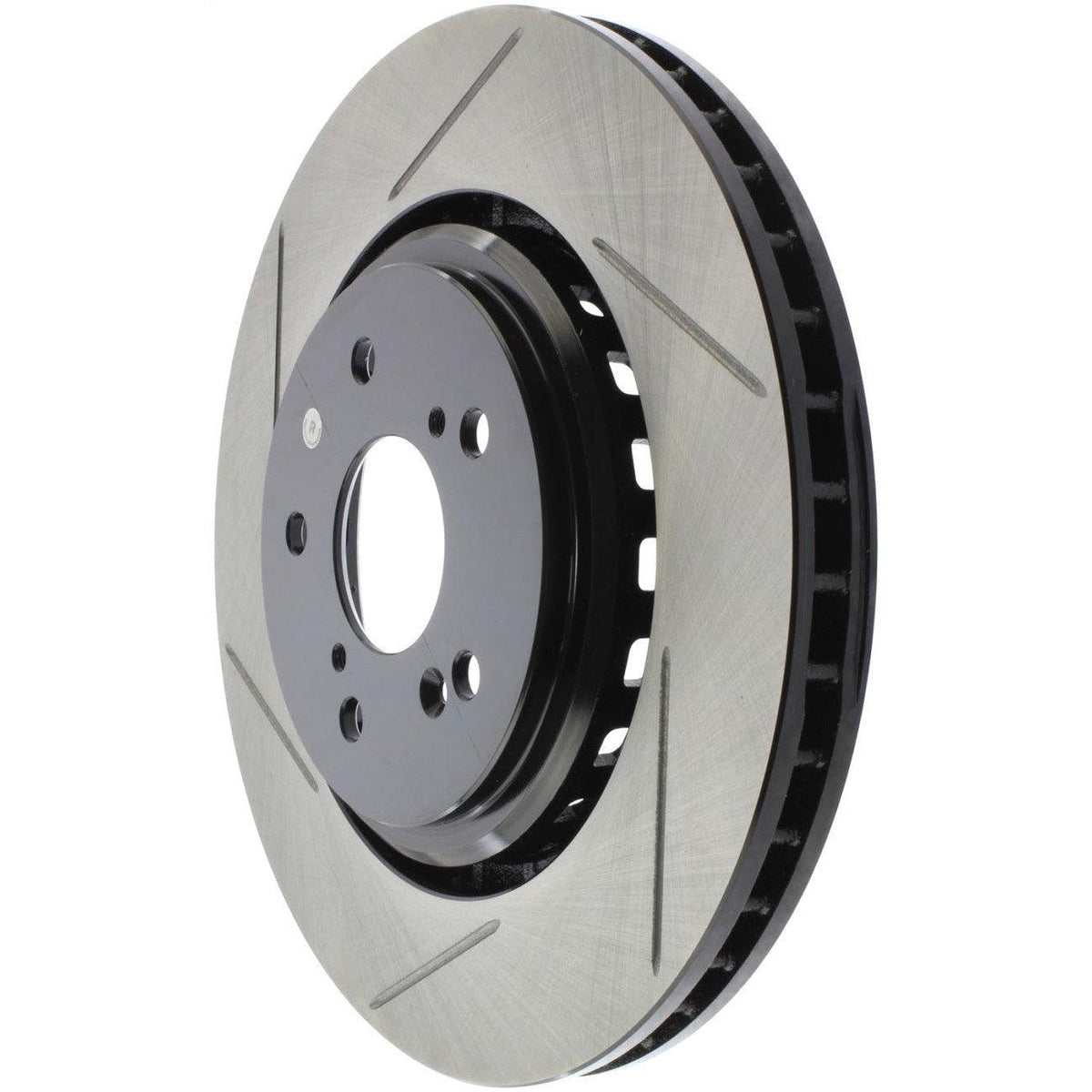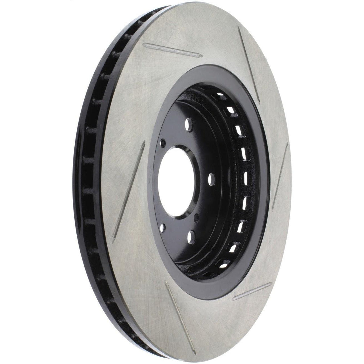 StopTech Slotted Sport Rotors are 1-piece direct replacement brake discs for factory brake systems and stock calipers that look great behind your wheels – and offer significantly improved braking performance. The unique slotting aids with heat and brake dust dispersal; prevents glazing of the pads; adds bite and improves wet and dry braking performance. Built to last; the black e-coating provides protection from corrosion and the high carbon metallurgy (in most applications) offers quieter operation; better crack resistance and increased performance.