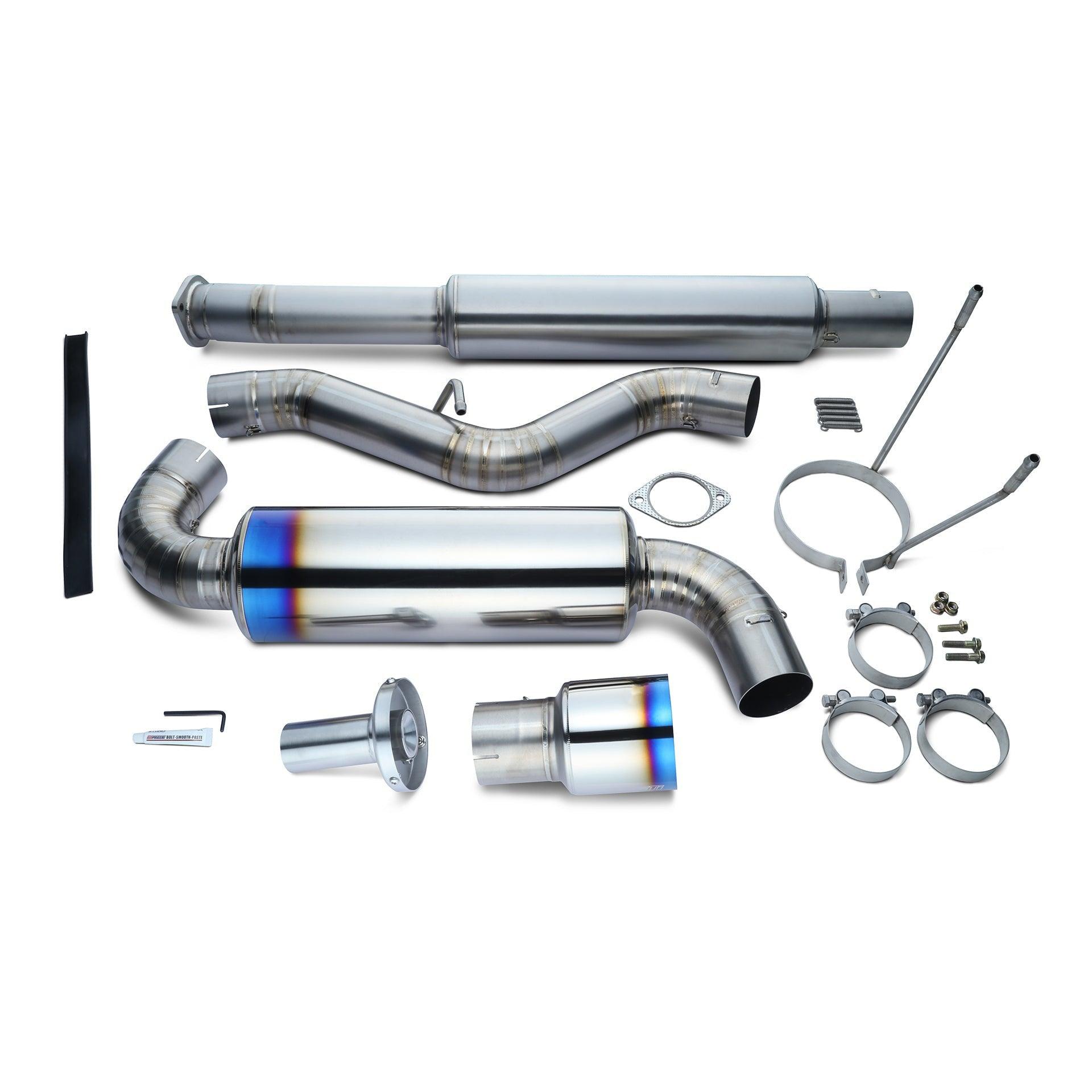 This is Tomei's latest Expreme Ti Version 2 Titanium Cat-Back Exhaust System. The Version 2 will weigh less than the Tomei Type D, and still features full titanium construction making this one of the lightest cat-back examples available. The design still combines a larger piping diameter with smooth bends which also feature JDM-inspired pie cuts. The result is more horsepower and torque, a good amount in weight savings, all while producing a race-inspired exhaust note. A great investment for your daily driver, weekend show car, or purpose-built race car as it is an exclusive part that will add style, value, and performance.